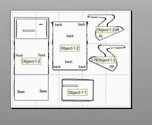 Then I cut out the four pieces. Object 1-1 is ignored and was part of another idea I had.